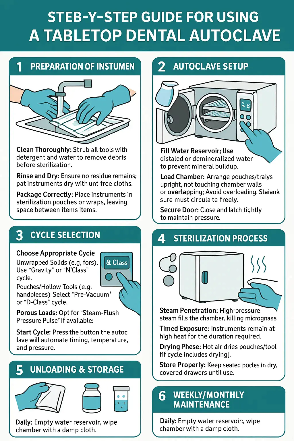 در اینجا یک راهنمای واضح و گام به گام برای استفاده از a اتوکلاو رومیزی دندانپزشکی :