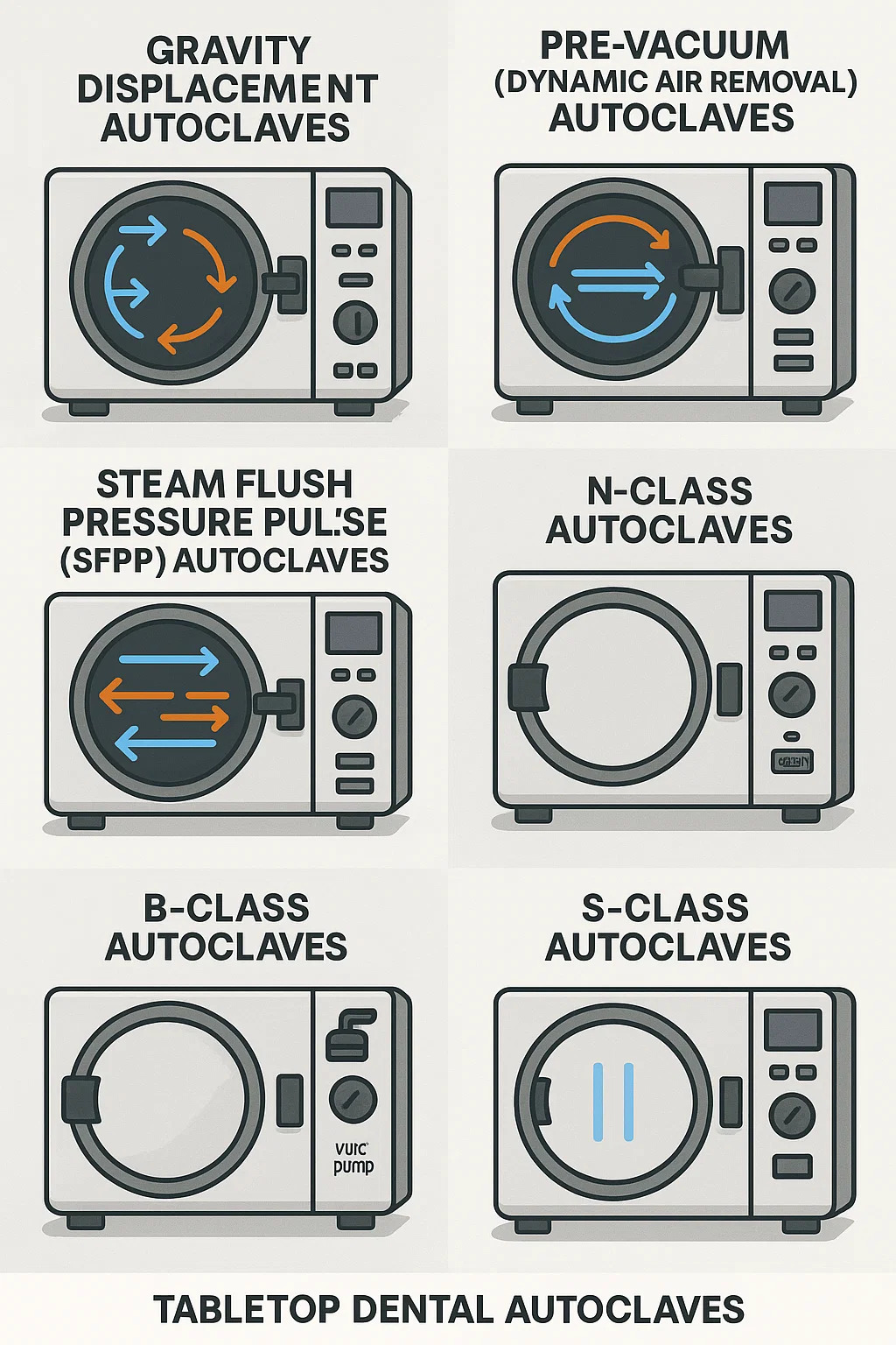 در اینجا انواع اولیه وجود دارد اتوکلاوهای رومیزی دندانپزشکی :